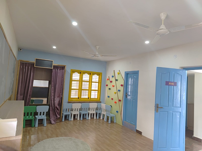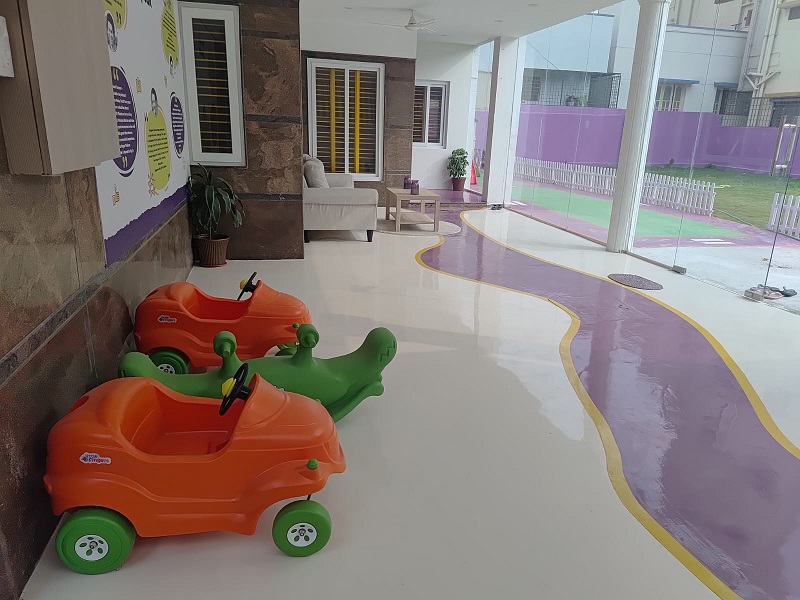 Like all our preschools across India and abroad, we have a smart classroom at Medahalli, which includes smart-boards as well as CCTVs for vigilance and security of the children. Your children are in a safe space with diligent teachers and staff watching over them. Research says creativity can spark joy and enhance learning, hence we have designed our classrooms with a colourful and vibrant vibe, where children can have fun. The equipment’s are also especially curated, so that they are safe and will get a better learning experience. We believe that a child’s first learning experience after their home is at their preschool, play school, playgroup or nursery school that they attend, and hence take every effort to make this an enriching and memorable one.